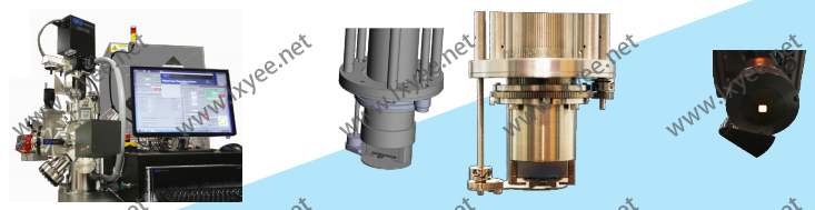 不论是在真空中,还是在一个大气压的氧气中,辐射加热基片台均可将衬底加热达 850 ℃。最大衬底尺寸为直径 2 英寸, 并且样品夹持器可以容纳更小的衬底。样品夹持器可以在 Load-Lock 上使用。衬底 360° 旋转由电机驱动,可由计算机控制。 这种衬底旋转特性对于 RHEED 分析至关重要,可以促进衬底的晶体结构对准 RHEED 电子束。