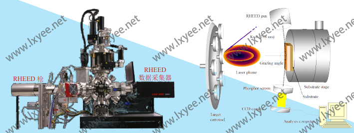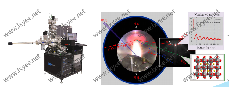 激光 MBE 是普遍采用的术语,该法是一种纳米尺度薄膜合成的理想方法,高真空下的 PLD 与在线工艺监测的反射高能电 子衍射(RHEED)的联合应用,为用户提供了类似于 MBE 的薄膜生长的单分子水平控制。