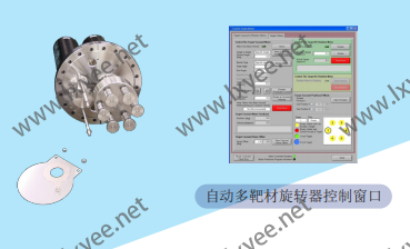 靶材摇摆:摇摆意味着扫描。靶材旋转器上有两个直流电机。一个直流电机控制靶材围绕自己的轴旋转(RPM)。当这个 电机打开时,旋转器上的 6 个靶材都以给定的 RPM 旋转(如:20 RPM)。还有第二个直流电机,可以在两个用户选择的 值之间对靶材旋转器进行摇摆。如果我们的主靶材在 60° 位置,摇摆将被设置在大约 55° 和 65° 之间。