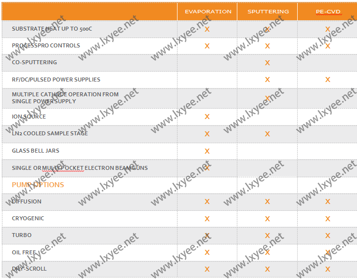 探索者提供了薄膜工业中最广泛的配置和沉积模式:电子束蒸发、电阻蒸发、溅射、离子镀和离子辅助沉积。