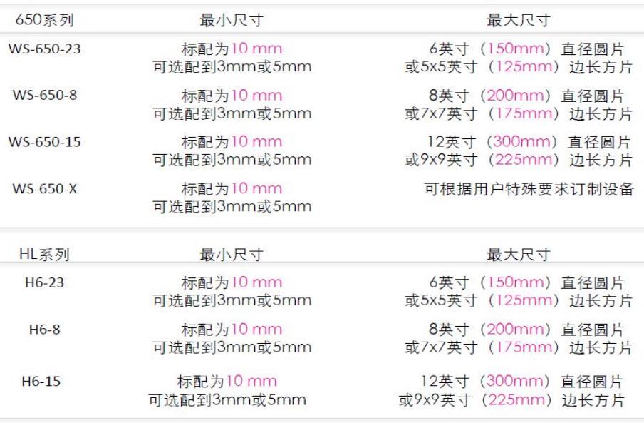 适用旋涂材料的尺寸范围:
