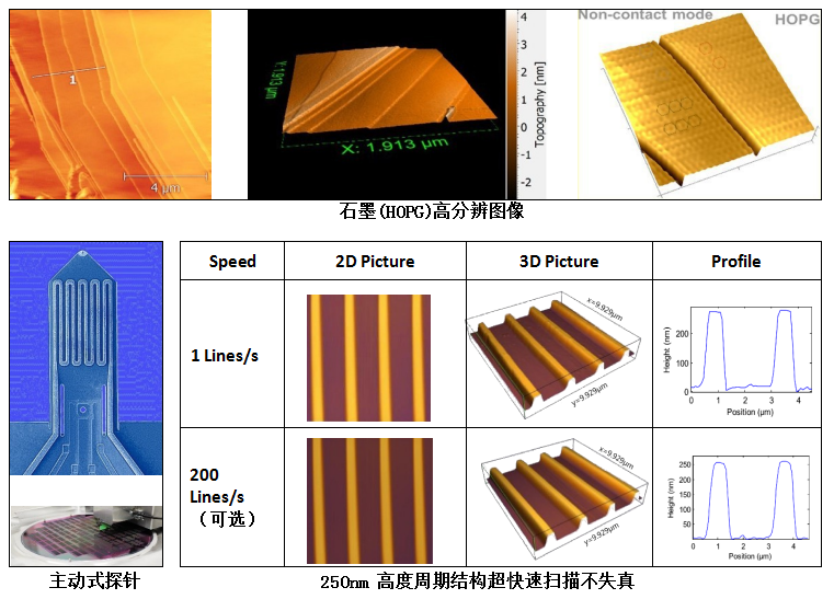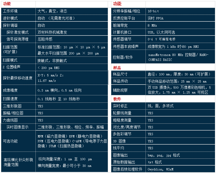 The AFM 100-stage nanoParcannano high-speed atomic force microscope (AFM) uses an active intelligent needle tip that integrates a sensor, driver, and functional needle tip to achieve self-excitation and self-sensing without complex laser calibration, which is a huge improvement over existing AFM laser sensing. The system can realize high-speed and GX characterization of micro and nano structures in atmospheric, liquid and vacuum environments, and the imaging accuracy reaches the limit accuracy of 0.2 nm.