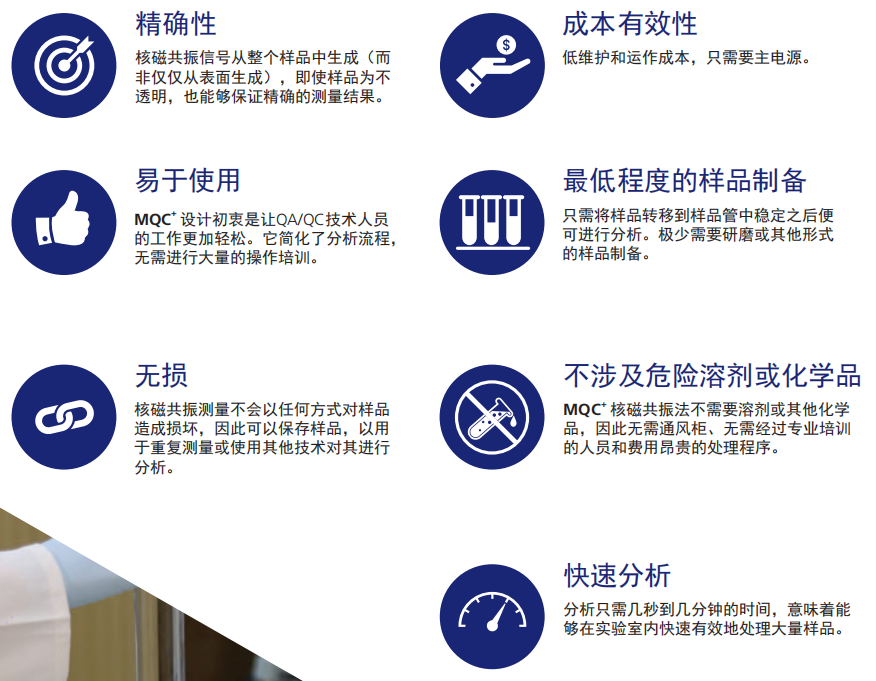 MQC是一款紧凑型台式核磁共振分析仪。我们在台式核磁共振分析仪行业拥有超过35年的经验,深知实验室分析仪最重要的品质是易用性、精确性、稳定性和可维护性。而MQC 满足所有这些品质要求。