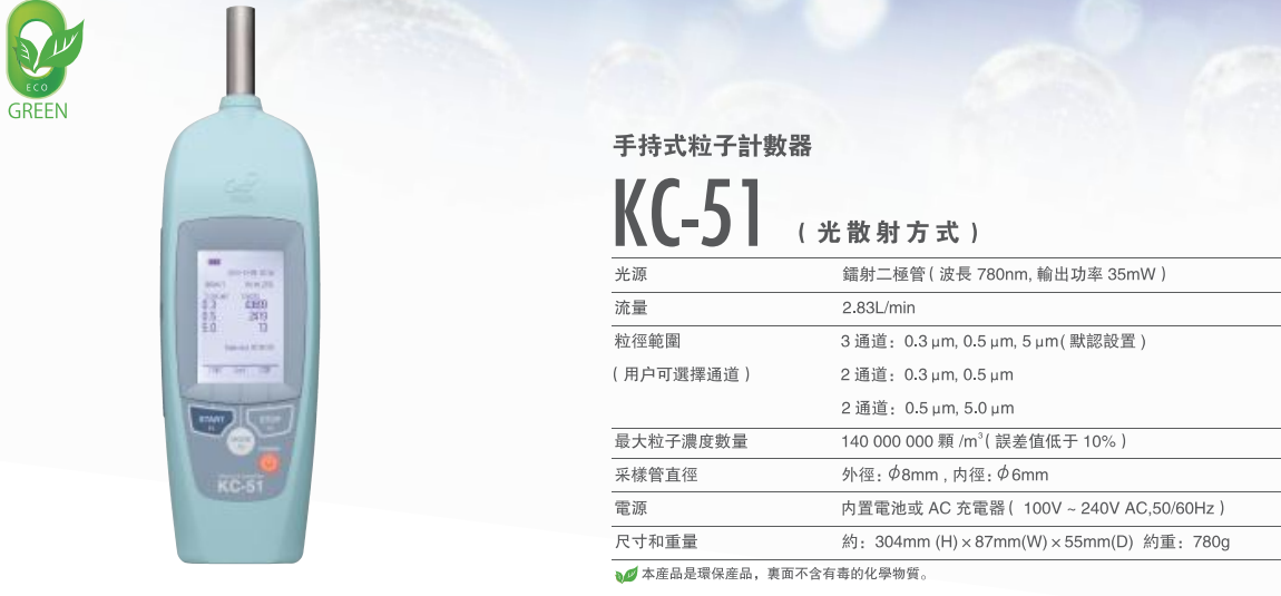 日本RION 手持式空气粒子计数器:KC-51( 光散射方式)(测气体)