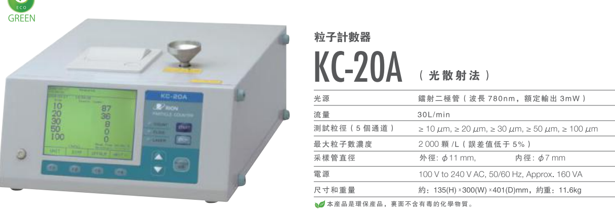 日本RION空气微粒子计数器:KC-20A ( 光散射法)(测气体)